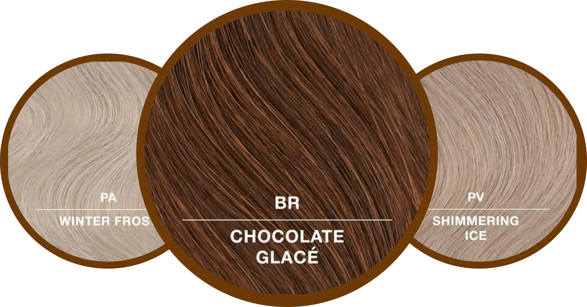 Rose Quartz, Winter Frost, Shimmering Ice, or Chocolate Glacé, for lived-in luminosity. This line is ammonia-free, vegan and gives a healthy boost of color & shine.