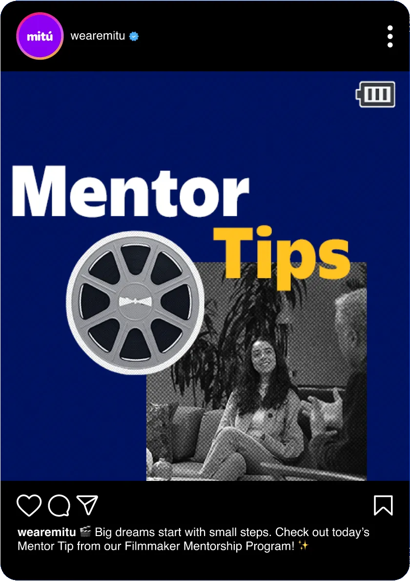 She was selected for season 2 of the mitú x Walmart Filmmaker Mentorship Program, where she developed her short film Nana Carmen.